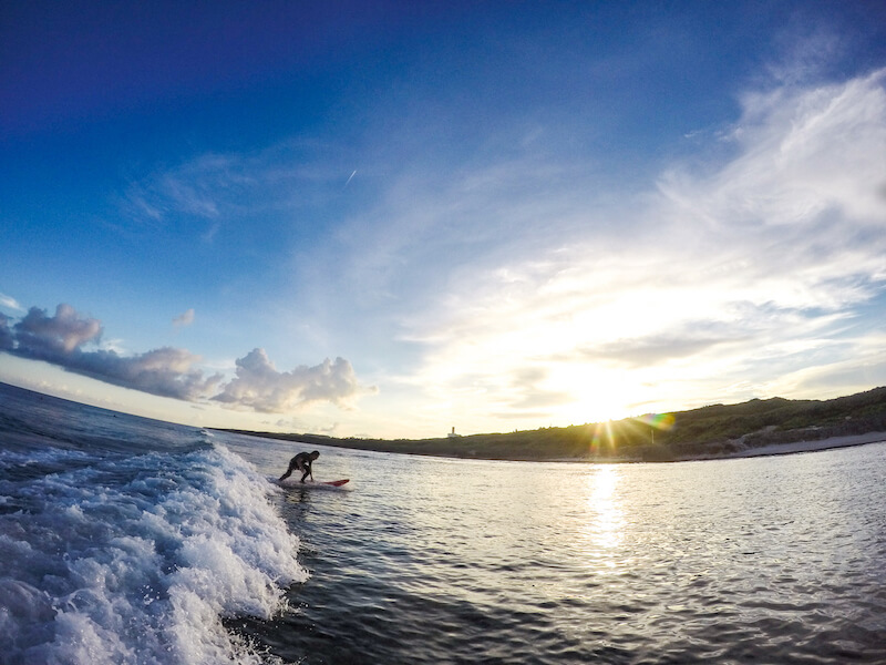 东京奥运会上受到关注的冲浪项目。相信乘着宫古之蓝的波涛会别有一番趣味。